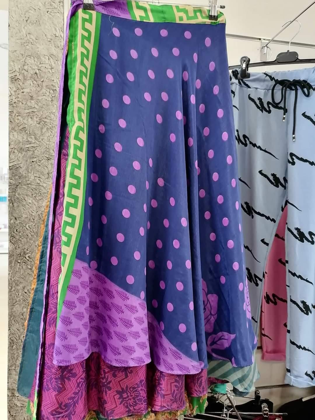 Ανακαλύψτε τη γοητεία του layering με αυτή την εντυπωσιακή φούστα-παρέο. Σχεδιασμένη με δύο επίπεδα υφάσματος που διαθέτουν διαφορετικά, συμπληρωματικά μοτίβα, δημιουργεί ένα μοναδικό οπτικό αποτέλεσμα σε κάθε σας κίνηση.