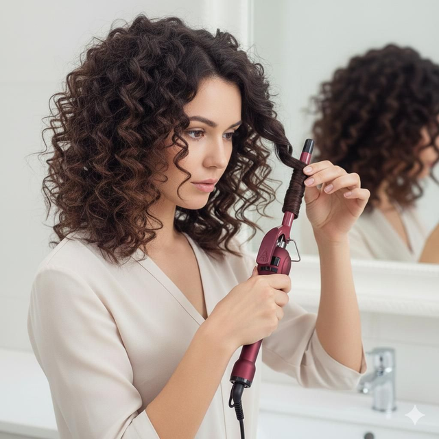 Μικρές Τούφες για Μέγιστο Αποτέλεσμα: Επειδή το ψαλίδι είναι 9mm, το μυστικό είναι να παίρνετε πολύ λεπτές τούφες. Όσο πιο μικρή η τούφα, τόσο πιο καλοσχηματισμένη και σταθερή θα βγει η μπούκλα.